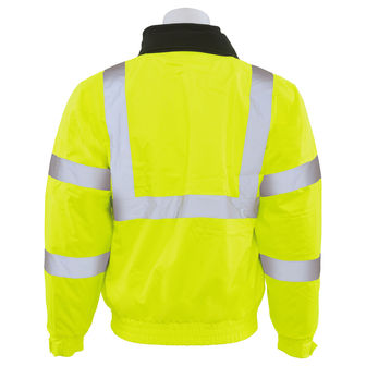 ANSI 107 Type R, Class 3 Jacket. Polyester 300D oxford with PU coating. 3 in 1 jacket with removable fleece liner. Jacket has 6 pockets, liner has 3 pockets. Mic tabs. Waterproof. Sizes MD-5X.